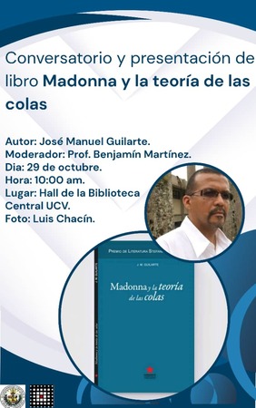 La Biblioteca Central tiene el gusto de invitar a la comunidad universitaria al conversatorio y presentación del libro MADONNA Y LA TEORÍA DE LAS COLAS del autor José Manuel Guilarte. En esta oportunidad contaremos con la presencia del prof. Benjamín Martínez como moderador. Esta actividad se llevará a cabo el día miércoles 29 de octubre